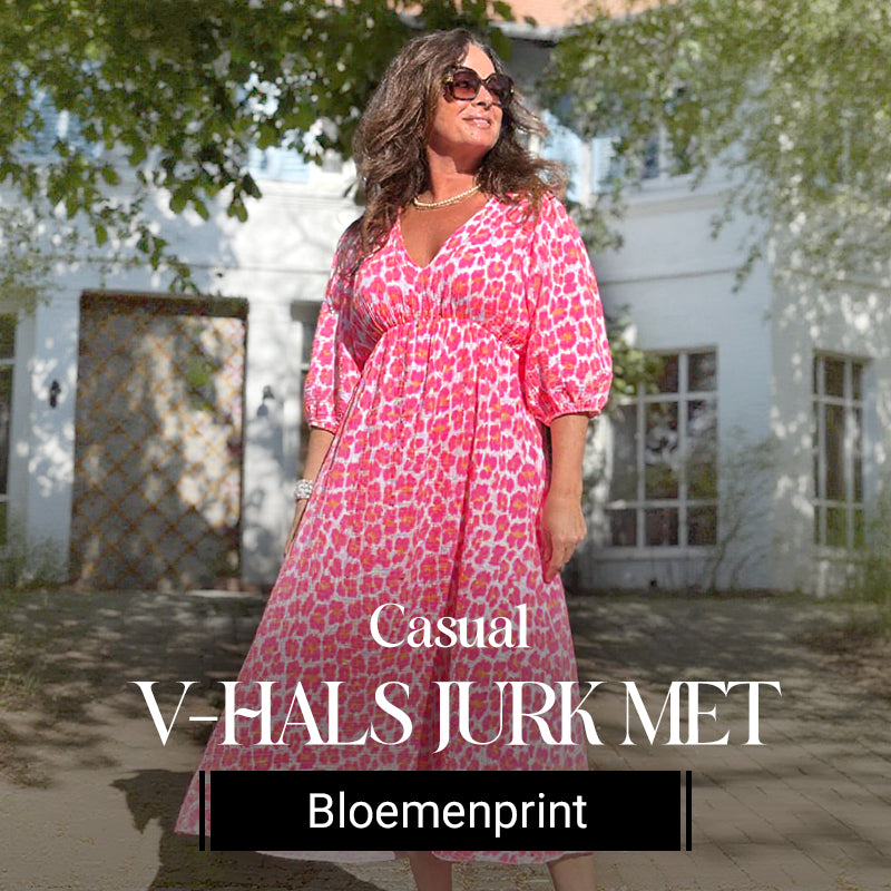 Dames v-hals geprinte jurk
